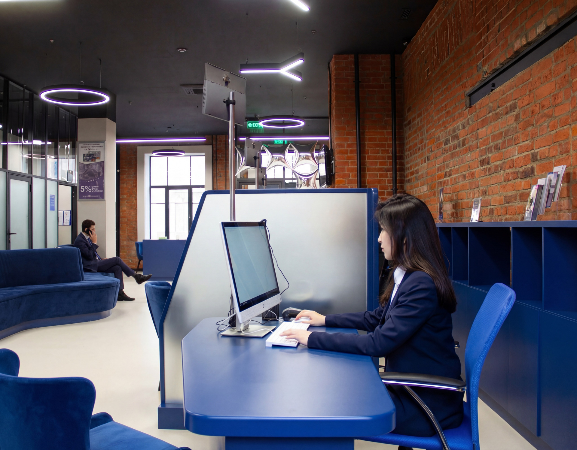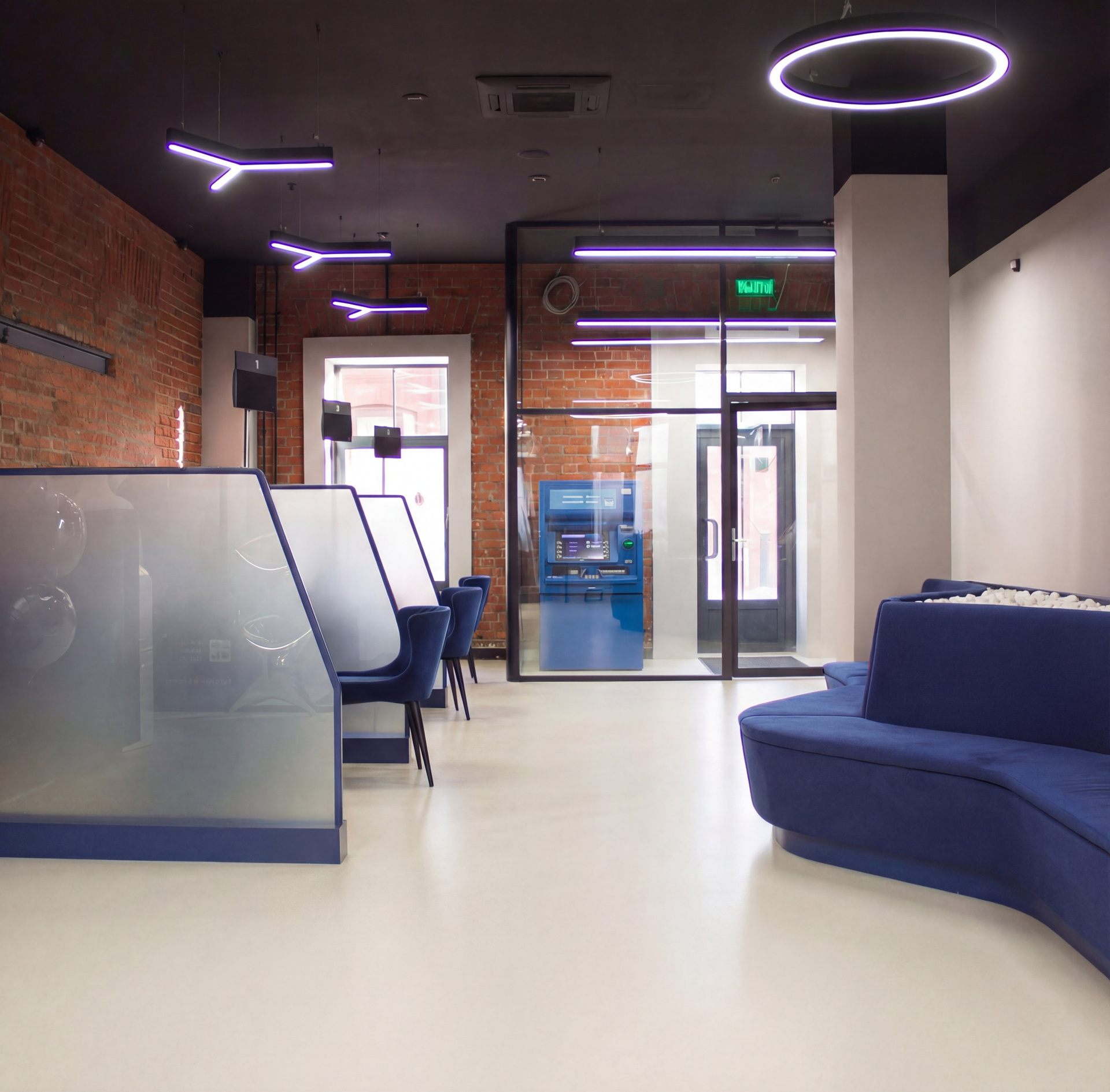 Интерьер VIP отделения банка находится в ДЕПО Белорусская (историческом здании, построенном в 1874 г.), когда-то функционирующим как трамвайное депо. Синий цвет — символ воды и неба, является основой концепции данного интерьера. Главный элемент интерьера- диван с ячейкой, наполненный натуральными камнями.