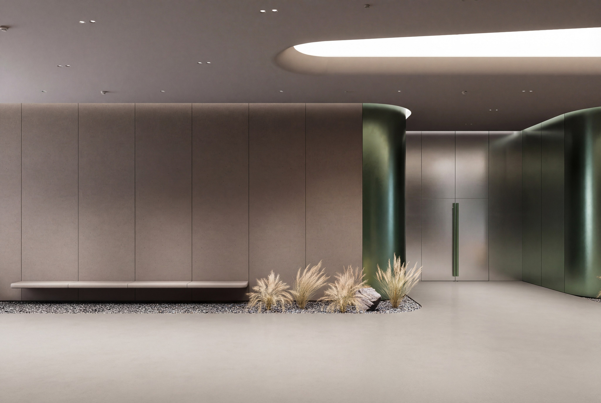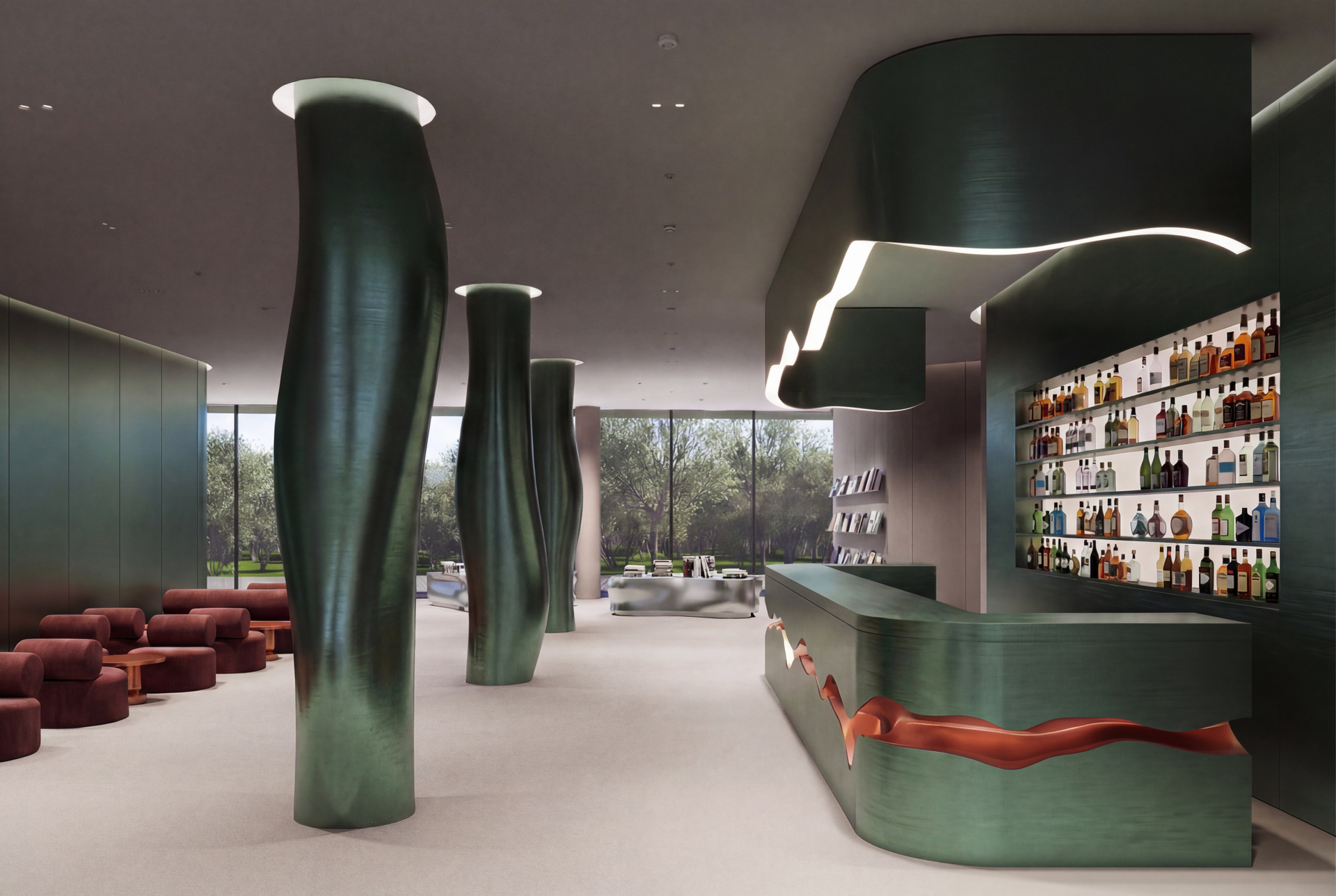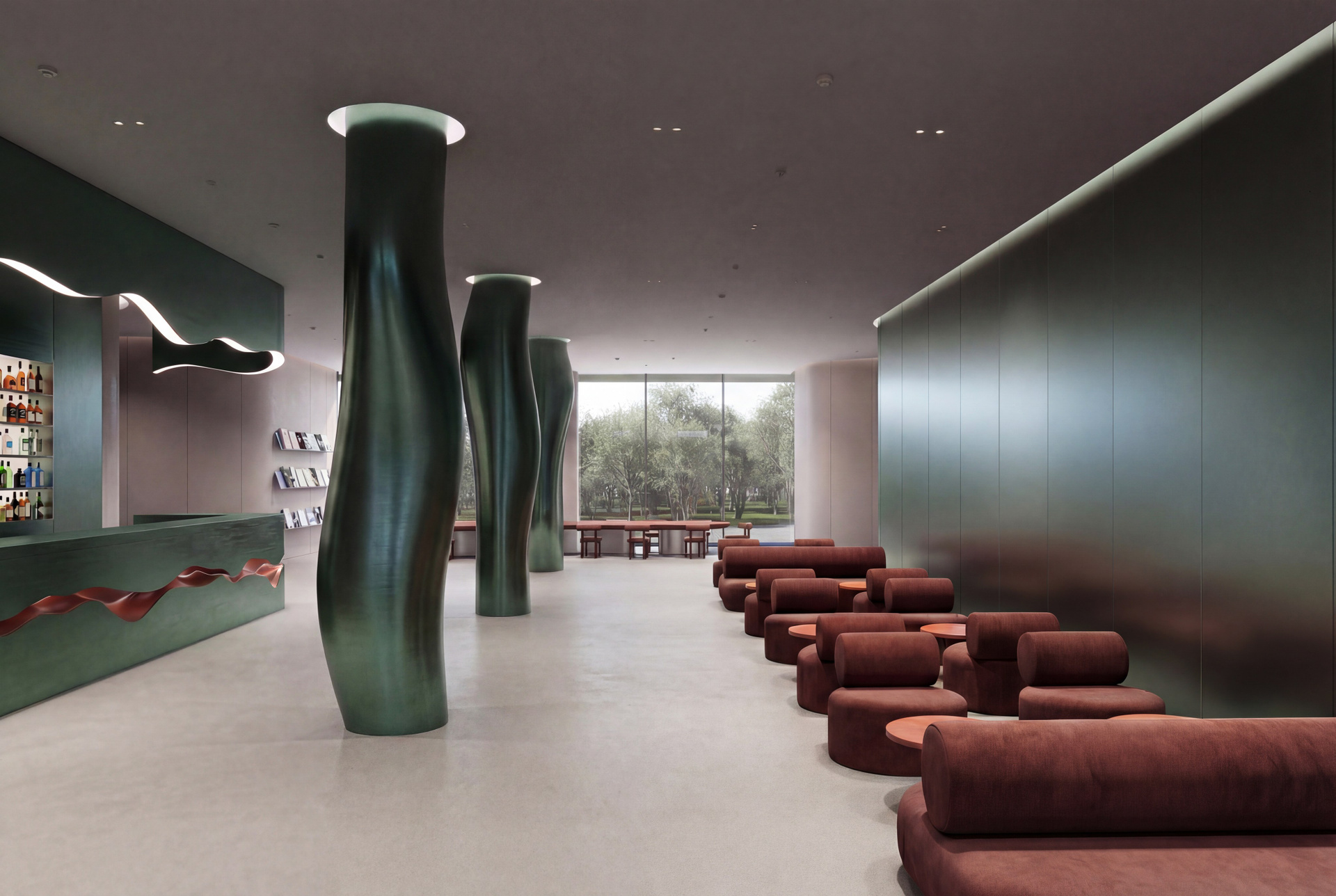 Проект интерьера фойе музея современного искусства в Стамбуле воплощает философию пространства, которое само становится произведением искусства. В основе концепции — натуральные цвета и природные формы, дополненные параметрическими элементами c плавными переходами, создающими ощущение непрерывного движения. Фойе музея выстраивается как целостный организм, где каждая деталь подчинена идее взаимосвязи и глубины восприятия. В нем располагаются зона ресепшн, зона отдыха, книжный магазин, коворкинг, бар и парадная лестница, здесь царит атмосфера непринуждённых встреч и открытий, связывающая музей с городской средой.
